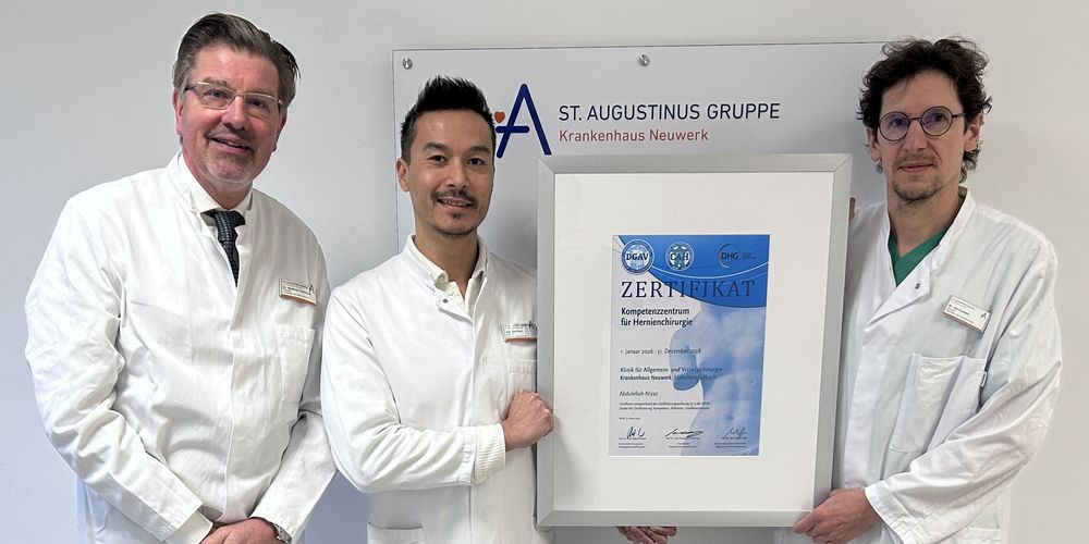 Die Klinik für Allgemein- und Viszeralchirurgie am Krankenhaus Neuwerk ist von der Deutschen Gesellschaft für Hernienchirurgie als Kompetenzzentrum ausgezeichnet worden. Die Zertifizierung bescheinigt der Klinik eine besonders hohe Fachkompetenz und klar strukturierte Abläufe bei der Behandlung von Hernien.